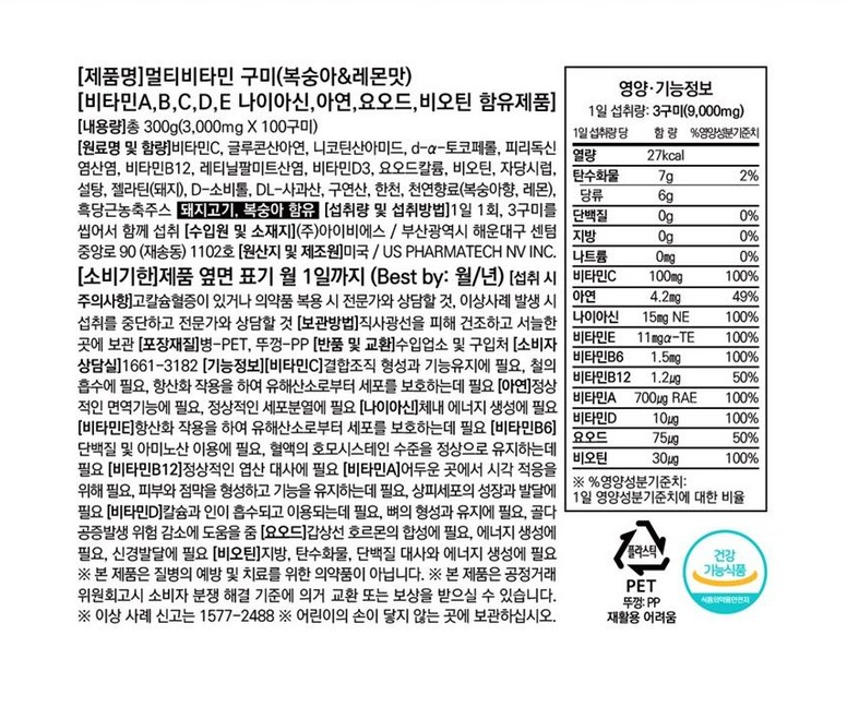 닥터브라이언 멀티비타민 구미 복숭아 & 레몬맛, 300g, 1개 - 비타민/건강식품 | 쿠팡