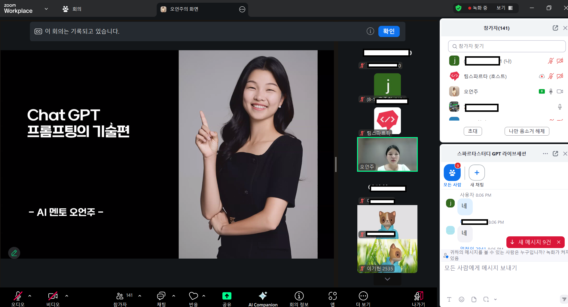 또한 라이브세션이라고 해서 실시간 줌수업이 1회 있습니다. 아래 해당 수업에 참여한 캡쳐본입니다