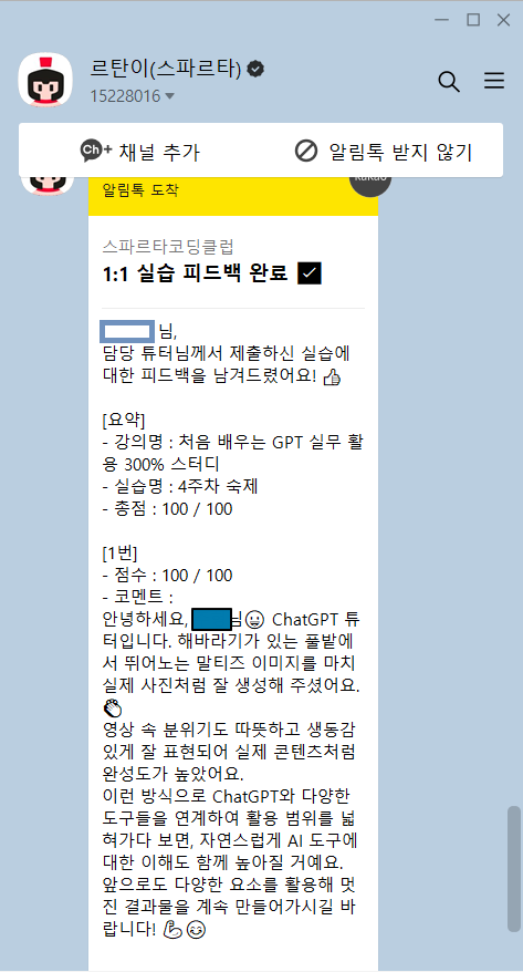 내일 배움카드로 스파르타 코딩클럽 Chat-GPT 수강한 저의 후기입니다 ~
