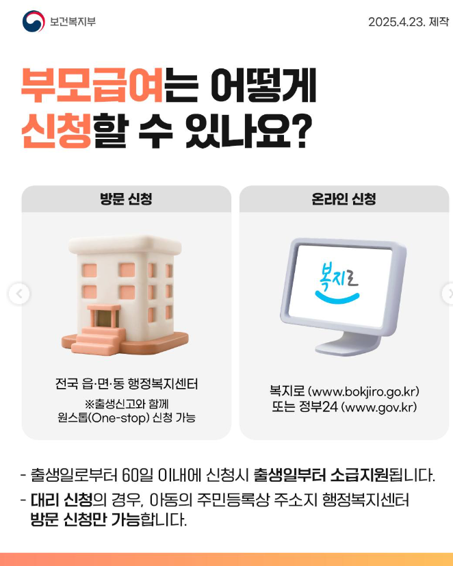 📧온라인 신청 : 복지로(www.bokjiro.go.kr) 또는 정부24(www.gov.kr)