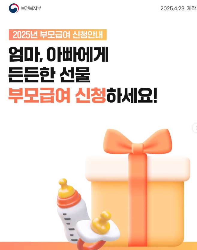 엄마, 아빠에게 든든한 선물 부모급여 신청하세요!